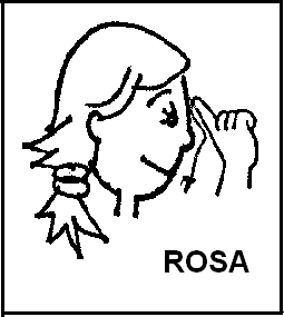 Dedo índice y corazón unidos y rectos se apoyan en el pómulo. Sin despegar el punto de contacto la muñeca se mueve arriba y abajo